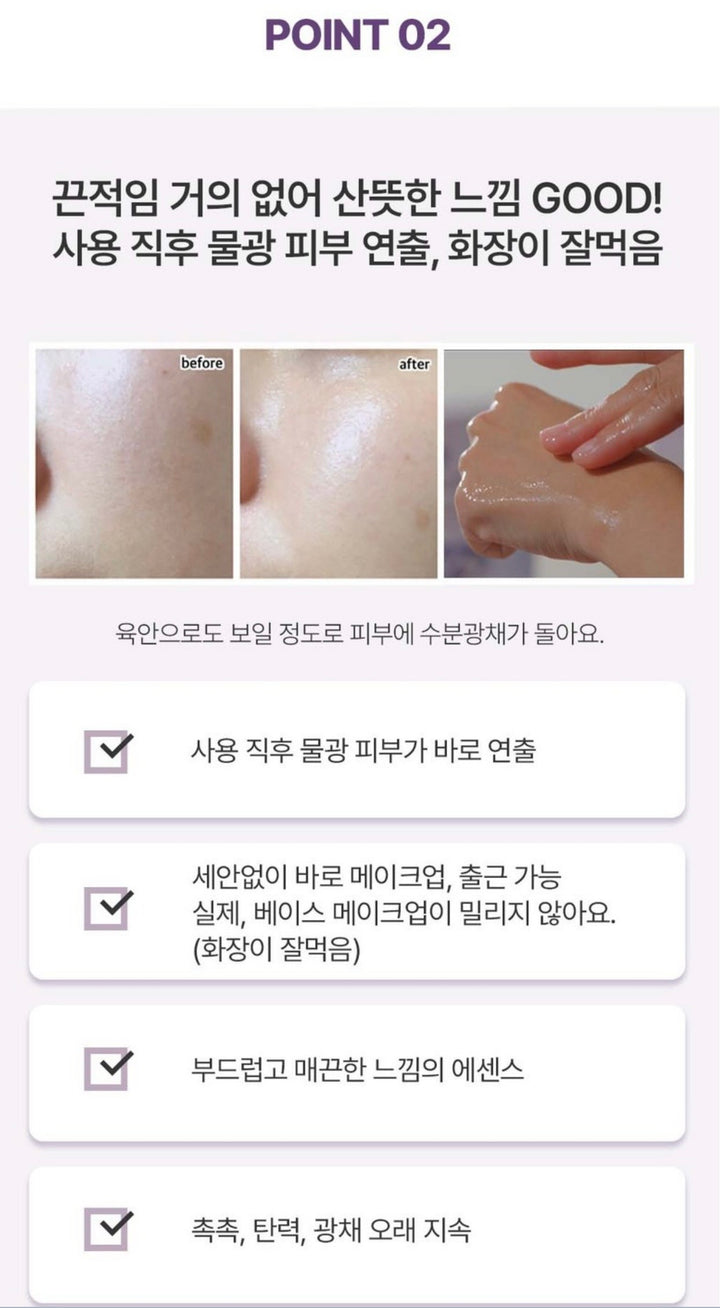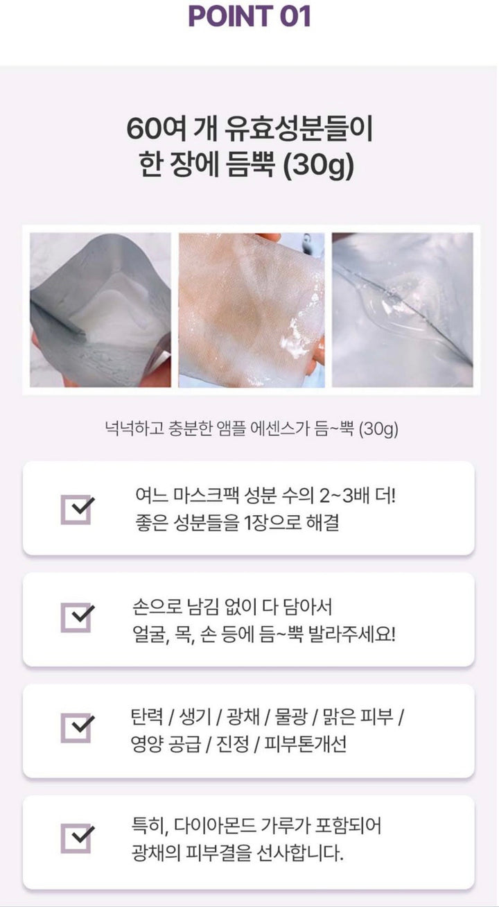 Each mask is soaked in 30g of concentrated ampoule essence that absorbs easily without stickiness, leaving the skin feeling silky, soft, and refreshed.