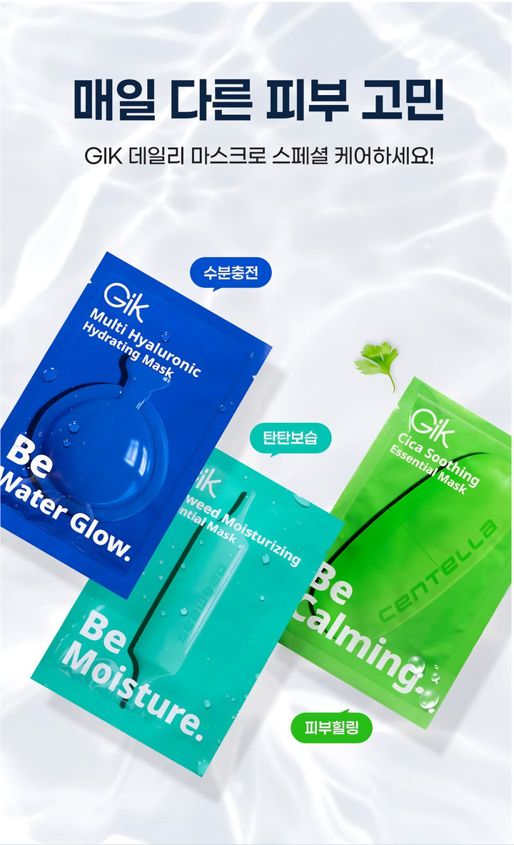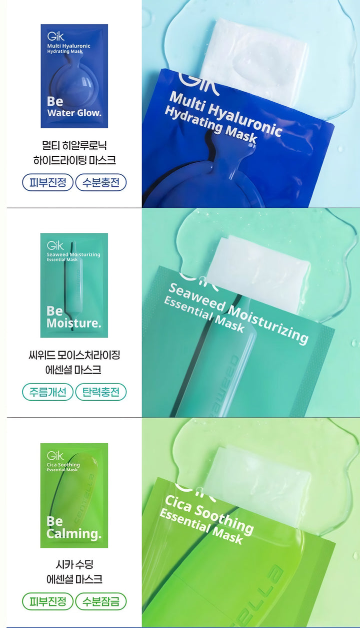 The GIK Triple Mask Set includes three essential sheet masks designed to provide complete daily skincare — hydration, soothing, and nourishment. Each mask is infused with premium natural ingredients to help balance and refresh the skin, leaving it soft, comfortable, and glowing.