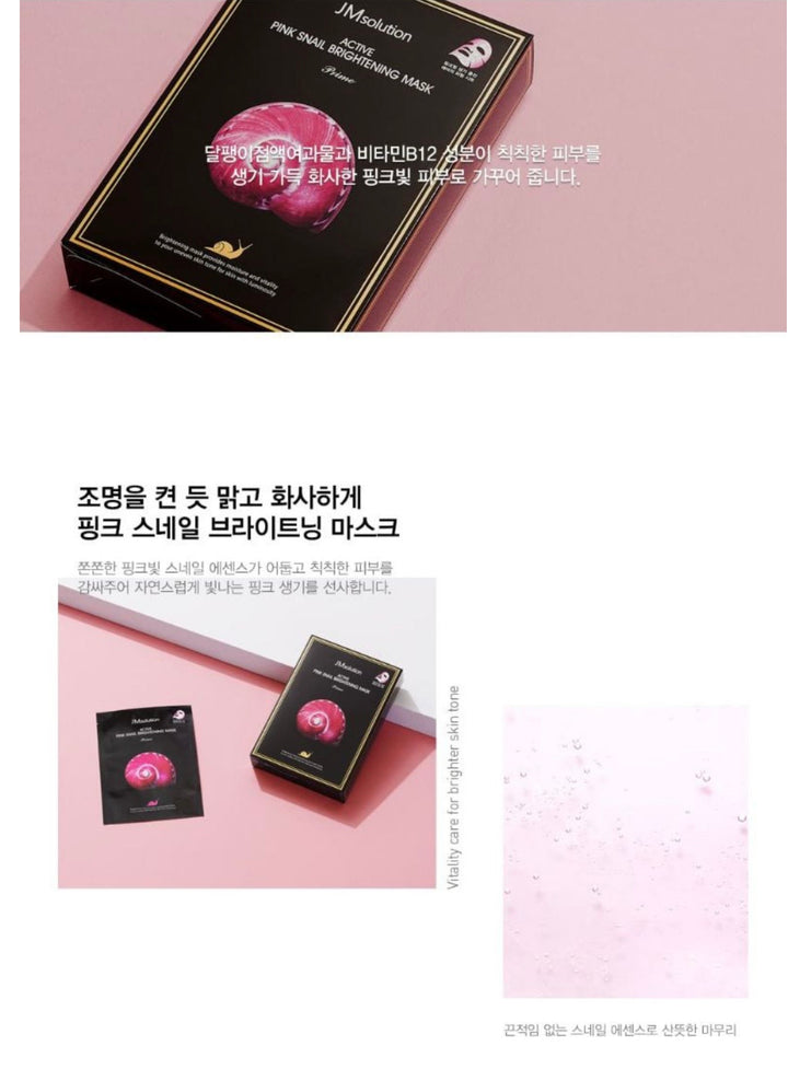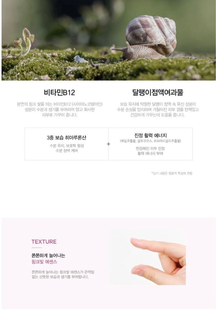 A brightening and moisturizing sheet mask enriched with Pink Snail Secretion Filtrate and Vitamin B12 to help the skin appear radiant, smooth, and refreshed.