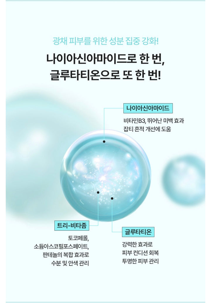 infused with Niacinamide (Vitamin B3) and Glutathione to help reveal a luminous and even-looking complexion.