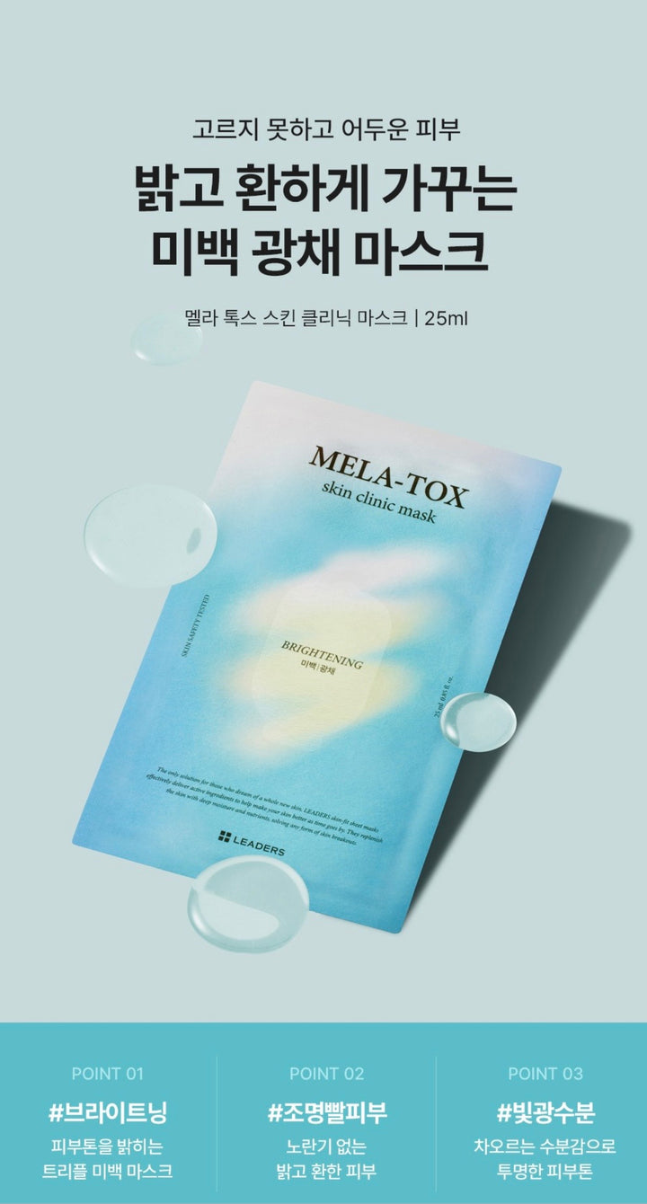 Mela-Tox Brightening & Tone-Up Mask – Whitening & Radiance Care (30 Sheets)