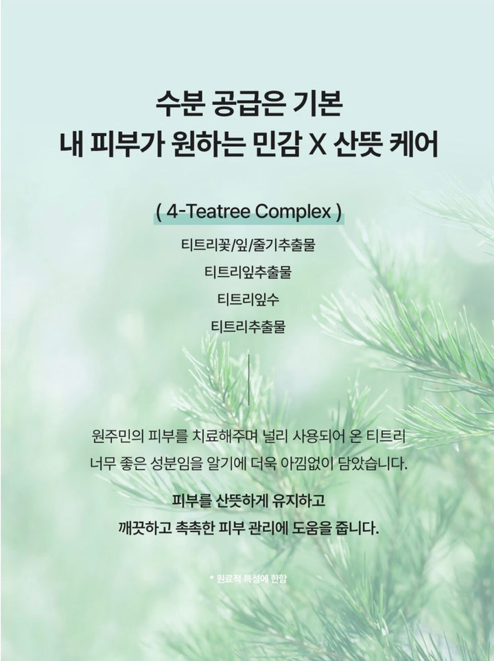 provides refreshing care with the 4-TeaTree Complex (Tea Tree Leaf, Flower, Stem, and Extract) to help balance and comfort the skin.