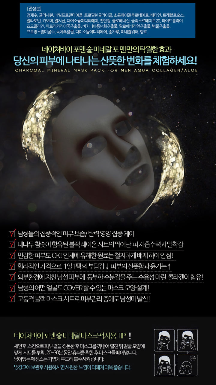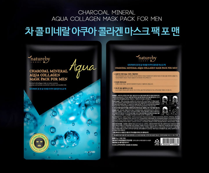 Charcoal Mineral Aqua Collagen Mask for Men – Firming & Refreshing (30Sheets)