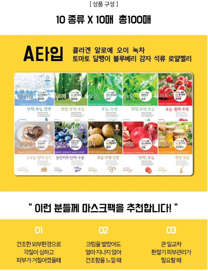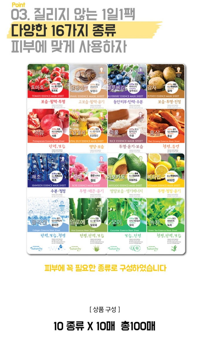 features 10 natural sheet mask varieties designed to provide complete skincare for daily use.
