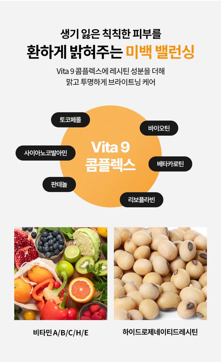 provides brightening and hydrating care with the Vita 9 Complex — a blend of nine essential vitamins that help revitalize dull and tired-looking skin.